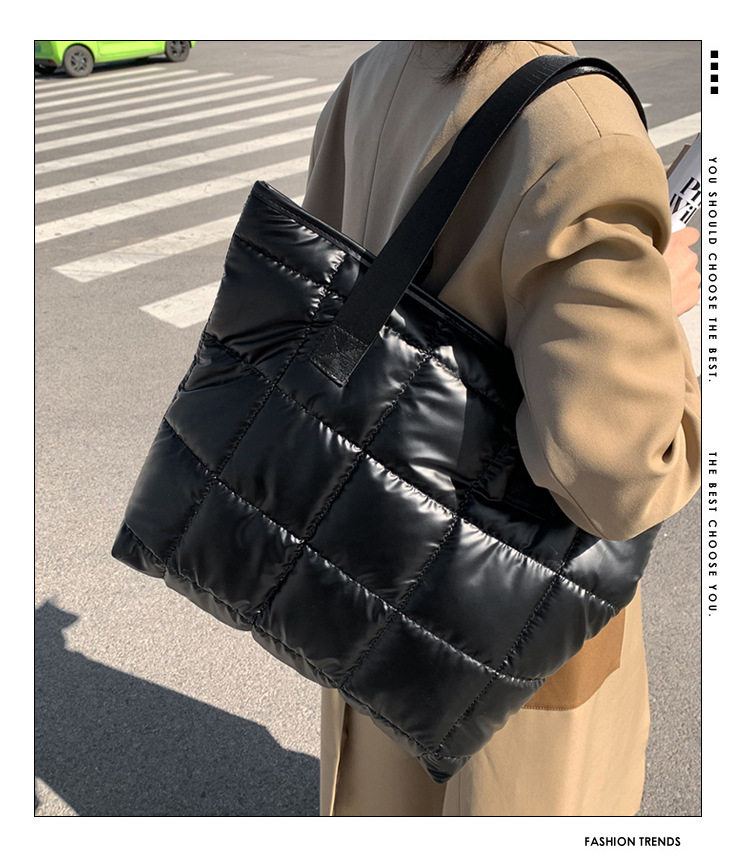 Korean Style Lightweight Large Bag Women’s Fashionable Cotton-padded Coat Tote Bag 2023 New Arrival Large Capacity Popular Shoulder Bag